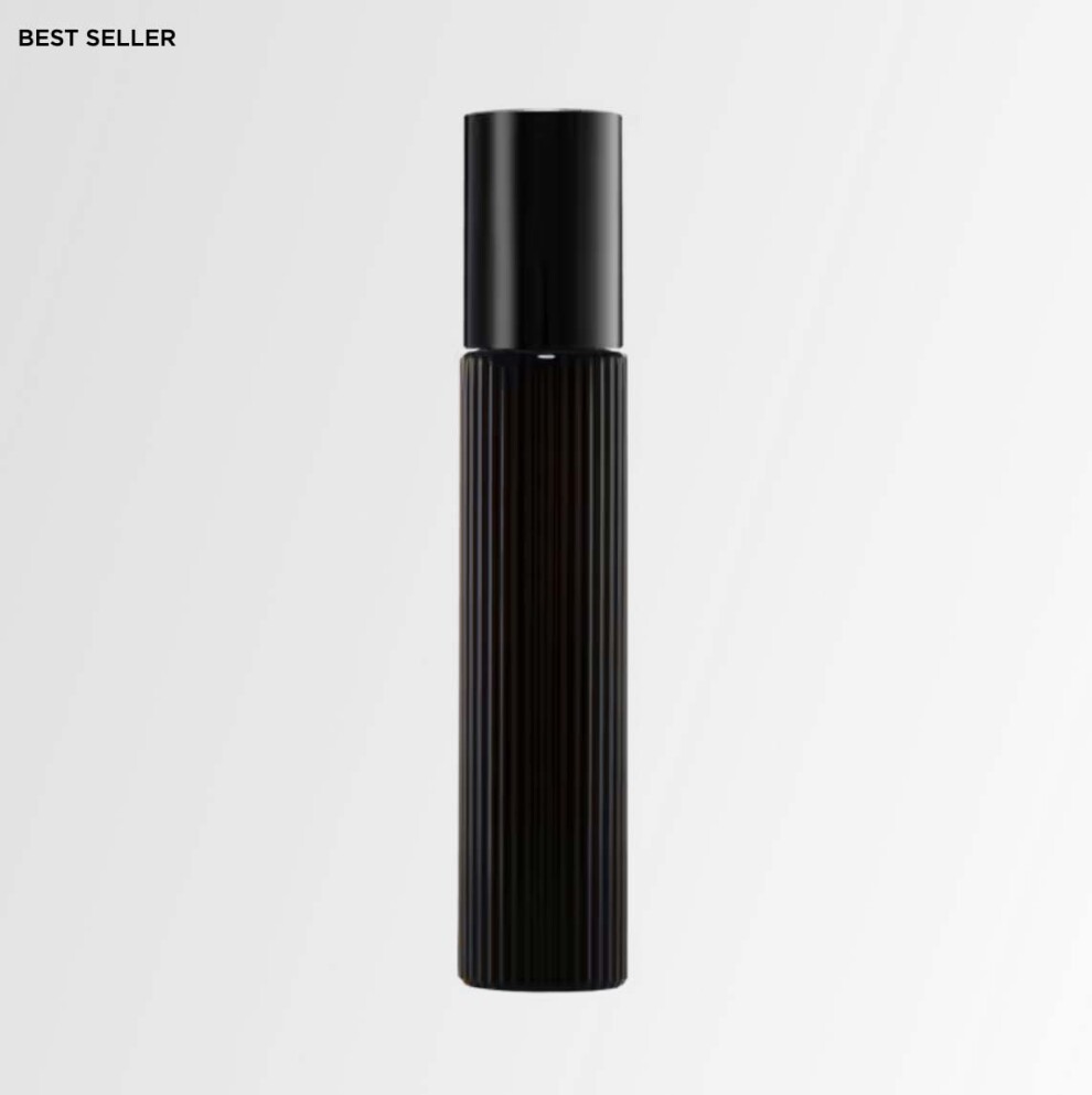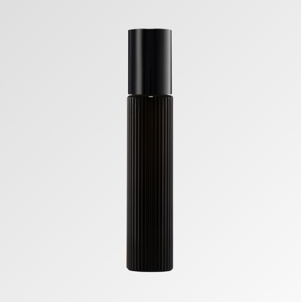 Флакон парфюмерной воды создан из рифленого стекла глубокого черного цвета с выгравированными на нем буквами.