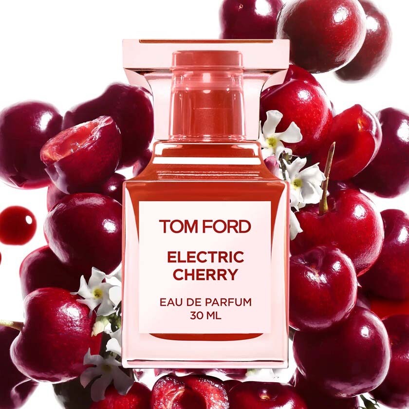 Electric Cherry parfum (unisex) сталкивает терпкую вишню и теплый мускус с душистым жасмином самбак и бодрящей нотой имбиря, что придает основному фруктовому акценту остроумное и яркое звучание. Сам Том Форд характеризует его, как «шипучий и игривый», посвященный этапу зарождения любовных отношений, с флиртом, кокетством и романтикой.