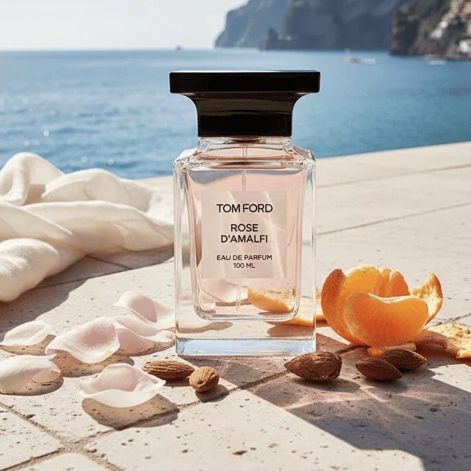 Парфюм Rose D Amalfi искрится сочным мандарином и терпким бергамотом, в финале нежно обнимает гурманскими нотами гелиотропа с миндалем. Шлейф — легкий и воздушный, как взбитый миндальный крем, кокетливый, как первый поцелуй взрослеющей красавицы.